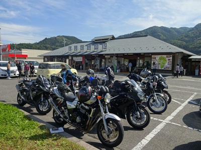 んで、国道461を進むのであるが、隊列が分断。途中国道461の看板が無い交差点で曲がり損ねて、迷子。Uターン1回目。ここでアクシデントが・・・えーっと、色々ありまして私ひで坊は左に立ちごけ。右側のステップが曲がってしもた。でも走りに影響なしにて、ツーリング続行!