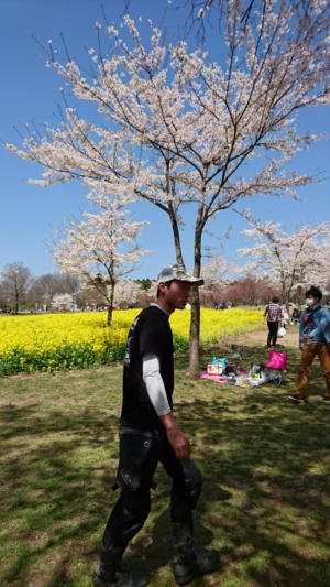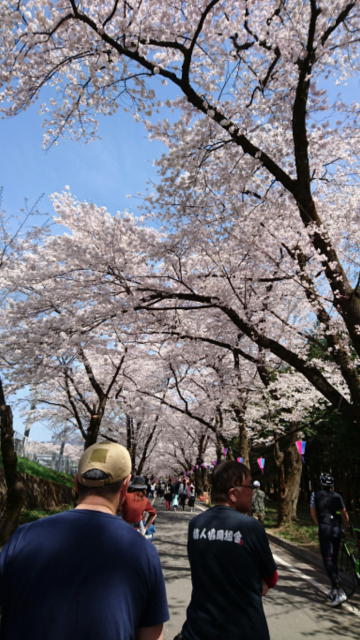 駐車場では、朝からハイテンションのオバちゃん達に迎えられ、満開の桜並木をみんなで散策。
