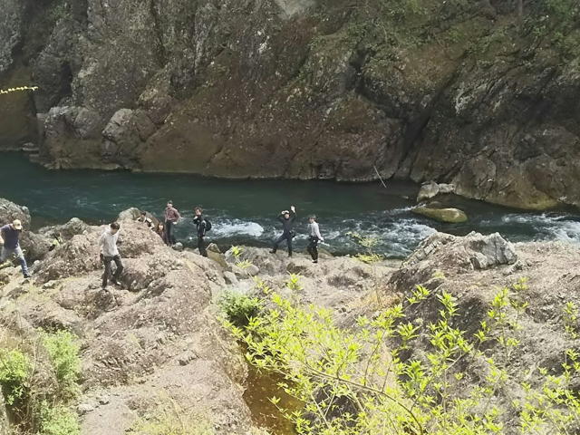 外には食事待ちのお客さんも多く、長居してもって事で、少し走って『高津戸峡』をみんなで散歩。