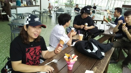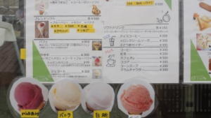 ほったらかし温泉の手前の笛吹川フルーツ公園でアイスとパフェを食べる