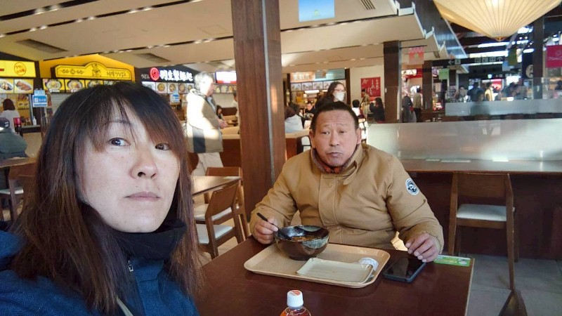 まだよしださんしかいないし、自動ドアの正面の席で風に吹かれながら優雅に寒そうに うどん食べてるし 笑